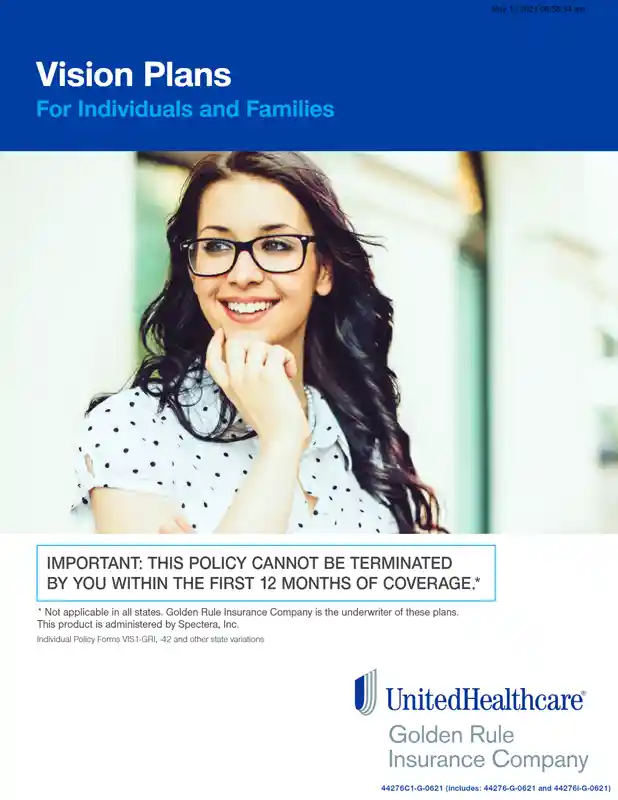 Through IMG’s partnership with UnitedHealthcare, you can purchase vision insurance, underwritten by Golden Rule Insurance Company, for individuals and families who are visiting the United States. These vision plans cover eye exams, plus glasses and/or contacts, depending on plan(s) available in your state.1 These plans are available for people of any age and are renewable for life.2 View the full details of available vision plans in the brochure or get a quote on the UnitedHealthcare website.